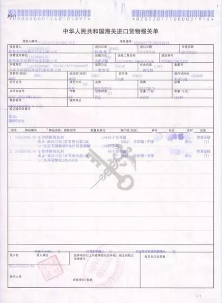中國海關(guān)出具的報關(guān)單產(chǎn)品品名為:生物降解清洗劑