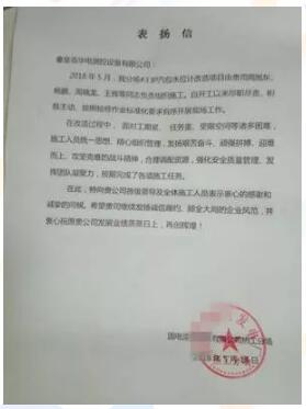 追求卓越,精益求精是每一個(gè)華電測(cè)控員工的行為準(zhǔn)則。此次改造過程中,我方施工人員獲得了電廠的來(lái)信表?yè)P(yáng)。