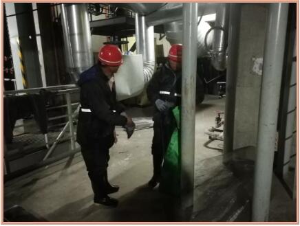 工程中我們遇到了各種各樣的棘手問題,為保證施工的順利進(jìn)行,甚至每天鏖戰(zhàn)十個小時以上?,F(xiàn)場施工環(huán)境惡劣我們絞盡腦汁的想各種辦法解決。然而每一個兄弟不抱怨不放棄,默默堅持,讓經(jīng)驗尚有不足的我再次感受到華電人的工匠精神。10月底,客服部經(jīng)理高廣洲親臨現(xiàn)場,對施工現(xiàn)場的兄弟們進(jìn)行了慰問,并對工程的進(jìn)度及每個細(xì)節(jié)進(jìn)行了了解和指導(dǎo)。這讓久出未歸的兄弟們感受到家一樣的溫暖,臉上掛起久違的笑容。