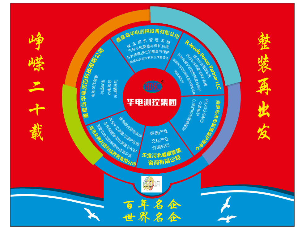目前,以秦皇島華電測控設(shè)備有限公司為本部,已成立了秦皇島華電測控科技有限公司、北京龍騰友信科技發(fā)展有限公司、非營利性公益機構(gòu)秦皇島市市民情感護理中心、位于美國休斯頓的R-Levels Power Partner Limited Liability Company以及倡導(dǎo)“生機健康、無藥醫(yī)療”理念的樂覺河北健康管理咨詢有限公司。集團公司揭牌儀式將于2019年1月19日與公司20周年華誕盛典同時啟動!