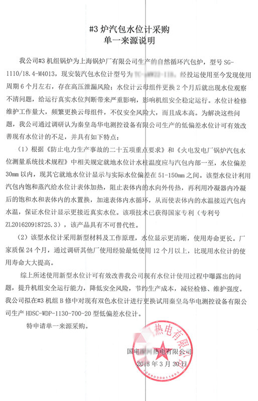該電廠擁有3臺300MW火力發(fā)電機(jī)組,2005年投產(chǎn)運(yùn)行。由于汽包水位測量系統(tǒng)測量偏差較大,存在了嚴(yán)重的安全隱患。在2018年采用了我公司的專利產(chǎn)品高精度云母水位計后,解決了原有水位測量不準(zhǔn)確的問題,為日后的安全運(yùn)行工作帶來了保障。