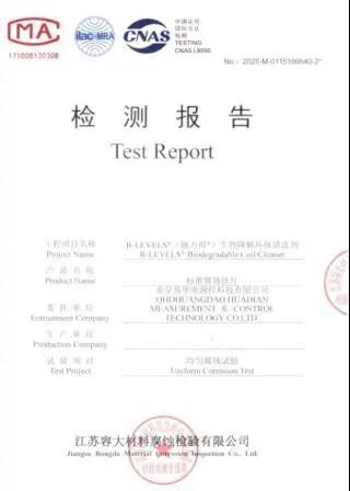 融力得®生物降解環(huán)保清洗劑除垢率優(yōu)于DL/T 957-2017《火力發(fā)電廠凝汽器管化學清洗及成膜導則》和DL/T 523-2017《化學清洗緩蝕劑應用性能評價指導及試驗方法》。清洗除垢效果顯著。