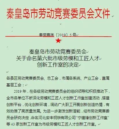 秦皇島華電測控設(shè)備有限公司“劉吉川創(chuàng)新工作室”喜獲殊榮,被秦皇島市勞動競賽委員會評為秦皇島市第六批勞模和工匠人才創(chuàng)新工作室。
