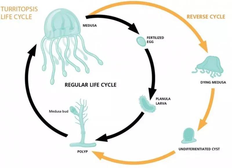 有觀點認為,“和普通水母在有性生殖后的死亡現(xiàn)象不同,燈塔水母性成熟最主要的特征便是個體還能夠重新回到水螅型。 并且這個過程并沒有次數(shù)限制,所以燈塔水母也被人們稱為“長生不老的水母”。當然,永生也并不能代表它們不會死,因為燈塔水母一般都只有5mm大小,所以它們只能獵食比自己小的浮游生物,對于那些比它稍微大點的生物來說。”