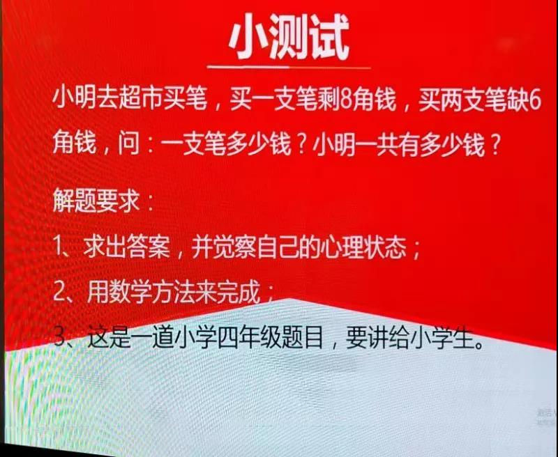 接下來是實(shí)戰(zhàn)環(huán)節(jié),劉老師通過一道小學(xué)四年級(jí)數(shù)學(xué)題,讓大家思考解題思路,如何讓孩子學(xué)會(huì)解題?
