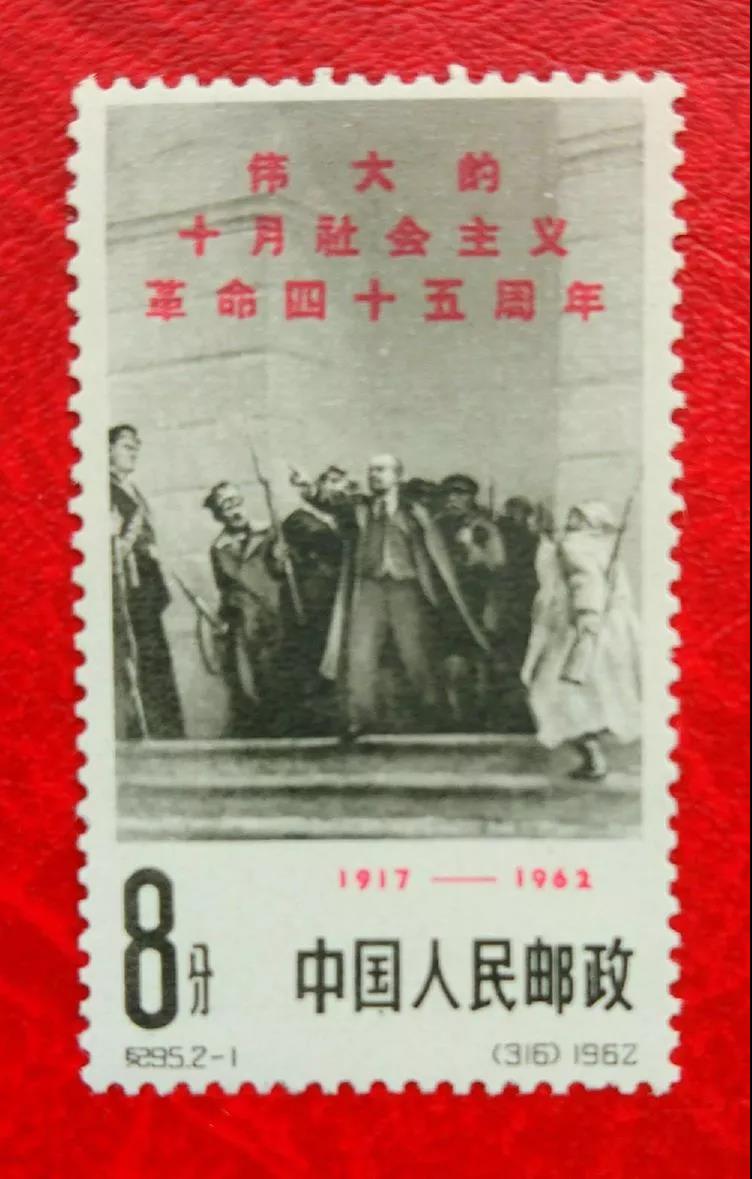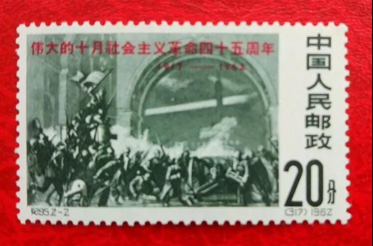 郵票記載歷史,郵票也在講故事。后來,郵電部又在1962年11月7日發(fā)行了紀(jì)95《偉大的十月社會主義革命45周年》的紀(jì)念郵票,全套2枚。2-1為"列寧和衛(wèi)兵" 。畫面中間為列寧。2-2為"攻打冬宮"。畫面再現(xiàn)了1917年11月7日,在列寧領(lǐng)導(dǎo)下,彼得格勒工人和士兵舉行武裝起義,并向俄國臨時政府所在地--冬宮發(fā)起總攻,臨時政府最終滅亡。