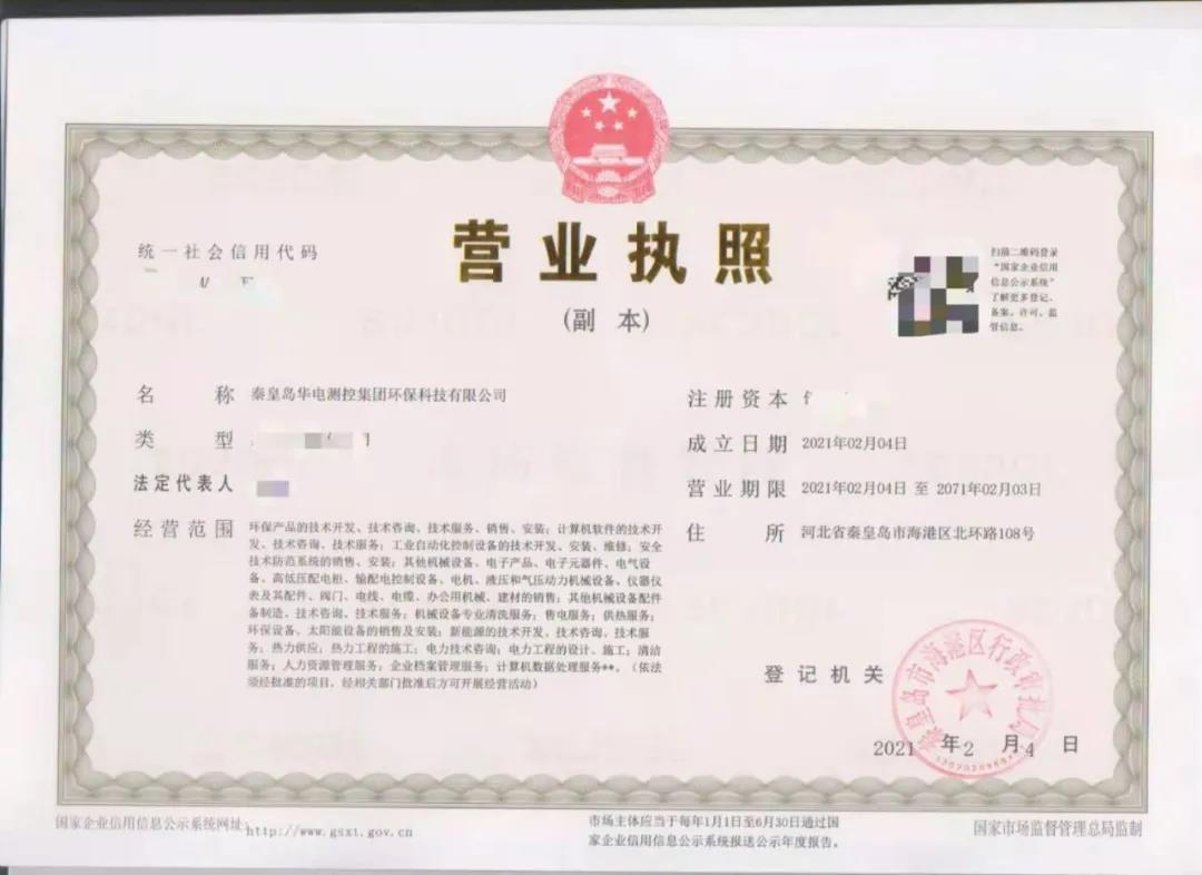 【企業(yè)動(dòng)態(tài)】熱烈慶祝秦皇島華電測(cè)控集團(tuán)環(huán)保科技有限公司注冊(cè)設(shè)立