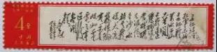 中國(guó)郵政曾經(jīng)發(fā)行的一套《毛主席詩(shī)詞》文革郵票,圖案均為毛澤東的詩(shī)詞手書。其中《毛主席詩(shī)詞》郵票第八枚《七律?長(zhǎng)征》,是毛澤東在長(zhǎng)征期間創(chuàng)作的最為經(jīng)典的一首,寫于1935年秋天,當(dāng)時(shí)中央紅軍已走過最艱難的路程,即將與陜北紅軍勝利會(huì)師。全詩(shī)極其精煉地概括了紅軍長(zhǎng)征的戰(zhàn)斗歷程,是紅軍長(zhǎng)征的全面總結(jié),表現(xiàn)了紅軍的偉大形象和樂觀主義精神,展現(xiàn)了一幅雄偉壯麗的歷史畫卷。毛澤東的這首詩(shī)影響最大、傳播最廣。這首詩(shī)的手書還出現(xiàn)在2006年10月22日發(fā)行的《中國(guó)工農(nóng)紅軍長(zhǎng)征勝利七十周年》紀(jì)念郵票小型張“大會(huì)師”的邊紙上。