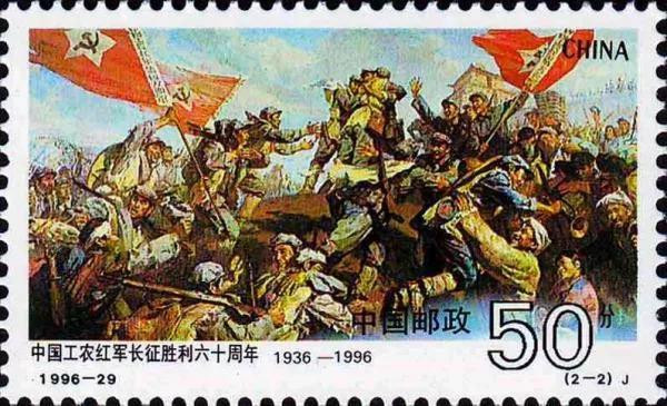 國(guó)家郵政局于1996年10月22日發(fā)行了《中國(guó)工農(nóng)紅軍長(zhǎng)征勝利六十周年》紀(jì)念郵票1套2枚。