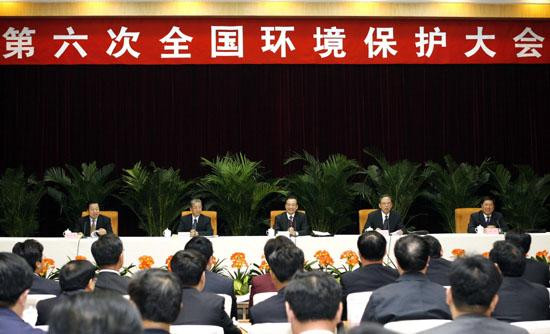 第六次全國環(huán)境保護大會舉行。溫家寶在會上講話,強調(diào)要綜合運用法律、經(jīng)濟、技術(shù)和必要的行政辦法解決環(huán)境問題。