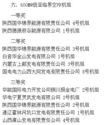 2015全國火電600MW級機組年度競賽結(jié)果