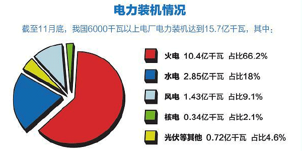 10月份以來,《電力發(fā)展 “十三五”規(guī)劃》出臺,成為首個公布的“十三五”能源專項規(guī)劃。預(yù)計到2020年,發(fā)電裝機(jī)容量達(dá)到20億千瓦。屆時非化石能源發(fā)電裝機(jī)達(dá)到7.7億千瓦左右,發(fā)電量占比提至31%。煤電裝機(jī)力爭控制在11億千瓦以內(nèi)。