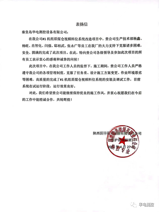 項目改造效果得到廠領(lǐng)導(dǎo)及工作人員認可,現(xiàn)場工程技術(shù)人員更是得到電廠上下的一致好評。項目結(jié)束后電廠立刻發(fā)來《表揚信》,信中電廠對生技部楊鑫、楊旺、肖智化、閆強、邸相武、張勇廣等員工的專業(yè)技術(shù)和工作態(tài)度給予肯定,并向我公司及工作人員標識感謝,最后“祝愿我們在今后的工作中能精誠合作,共鑄輝煌!”公司一直致力于解決火力發(fā)電廠煤倉“堵煤”、“棚煤”、“漏眼”、“板結(jié)”、煤倉狀態(tài)實時監(jiān)測、煤倉安全管理等問題。自主研發(fā)、生產(chǎn)的HDSC煤倉綜合管理系統(tǒng)系列產(chǎn)品在國際上處于領(lǐng)先水平,占據(jù)國內(nèi)主要市場,并遠銷海外,用戶超過800家,受到廣泛贊譽。公司生產(chǎn)的煤倉自動疏松裝置先后榮獲河北省中小企業(yè)質(zhì)量信得過產(chǎn)品、名牌產(chǎn)品稱號,煤倉綜合控制系統(tǒng)被認定為河北省軟件產(chǎn)品。
