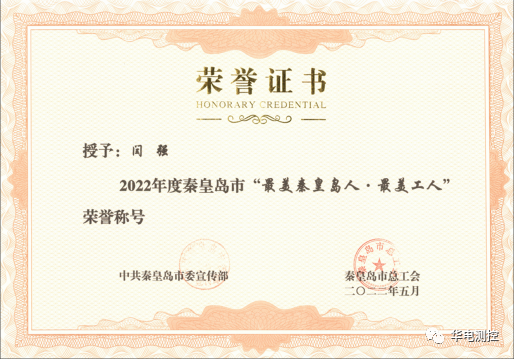 秦皇島華電測(cè)控設(shè)備有限公司高壓焊工閆強(qiáng)同志榮獲2022年度秦皇島市“最美秦皇島人?最美工人”榮譽(yù)稱號(hào)