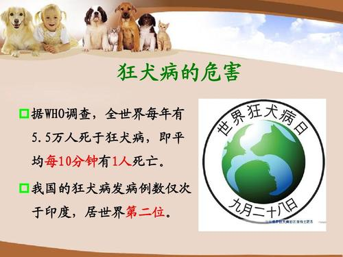 據(jù)世界衛(wèi)生組織在報告披露,狂犬病遍布于全世界,每年全球有55000人死于狂犬病,即每10分鐘就有1人死亡。此外,亞洲和非洲有1000萬人在被可能患有狂犬病的狗咬傷后,接受狂犬病疫苗注射。為了喚起全球的重視,在國際狂犬病控制聯(lián)盟的倡議下,世界衛(wèi)生組織、世界動物衛(wèi)生組織及美國疾病預防控制中心等共同發(fā)起并確定,每年的9月28日為世界狂犬病日。通過設立世界狂犬病日,將集合眾多的合作者和志愿者,群策群力,盡快使狂犬病成為歷史。第一個“世界狂犬病日”活動之后,各國紛紛開展相應宣傳活動,相關的各項活動獲得里程碑式的成功,將全球的狂犬病預防和控制工作向前推進了一大步。