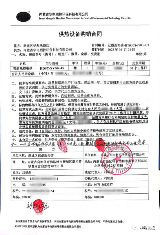 2022年3月24日,內(nèi)蒙古華電測(cè)控環(huán)保科技有限公司與呼和浩特市某洗浴店成功簽約智能洗浴電供熱系統(tǒng)項(xiàng)目,這是繼上一次某洗浴中心供熱項(xiàng)目安裝完成后的又一喜訊!本次合同的簽訂,將進(jìn)一步凸顯公司自動(dòng)化控制的優(yōu)勢(shì),為內(nèi)蒙古公司在國(guó)內(nèi)市場(chǎng)加快推廣和開(kāi)展多元化業(yè)務(wù)帶來(lái)了積極作用。