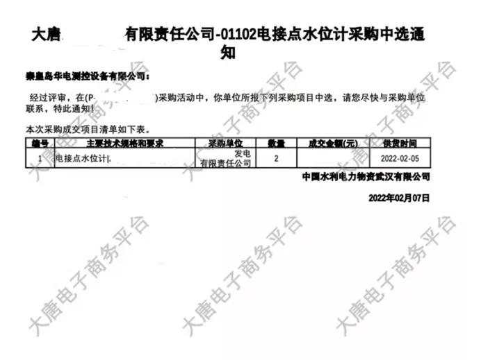 2月7日,春節(jié)過后上班第一天,公司收到了來自大唐某電廠發(fā)來的中標(biāo)喜訊,我公司HDSC系列電接點(diǎn)水位計成功中標(biāo),公司迎來了開門紅,開啟了公司虎年新篇章!