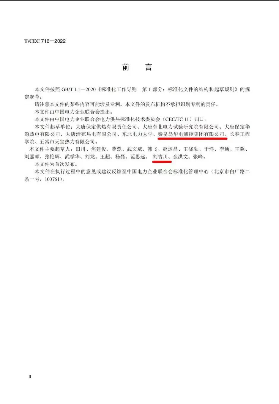秦皇島華電測控集團有限公司參與編制的團體標準——《火力發(fā)電廠智能熱網(wǎng)供熱服務規(guī)范》(T/CEC 716—2022)于2022年10月26日由中國電力企業(yè)聯(lián)合會發(fā)布,2023年2月1日實施。該標準文件由中國電力出版社出版、印刷、發(fā)行,規(guī)定了火力發(fā)電廠智能熱網(wǎng)供熱服務的質量與要求、運行與維護、服務與管理、服務質量評價等。