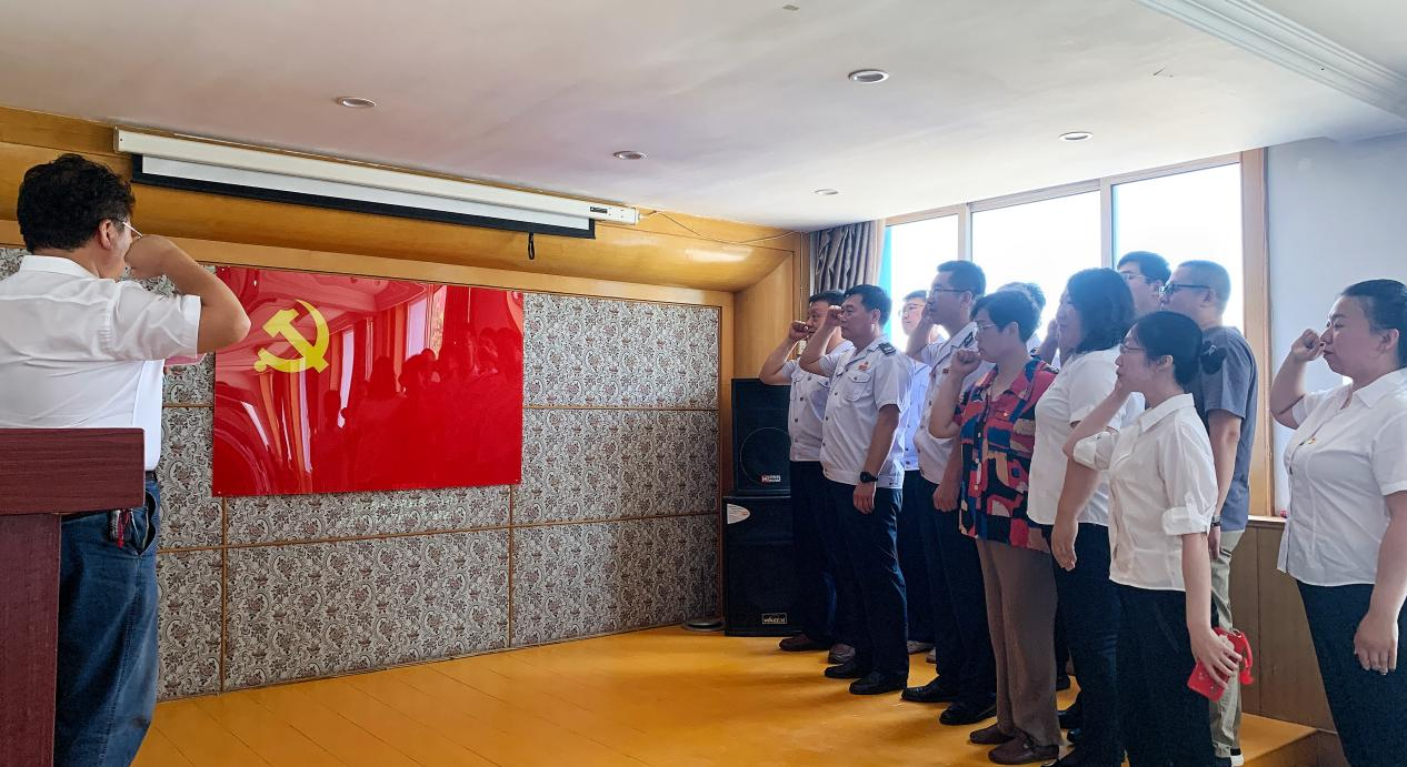 大會(huì)開始之初在全體黨員的共同見證下,由中共國(guó)家稅務(wù)總局秦皇島市稅務(wù)局所得稅科支部與中共秦皇島華電測(cè)控設(shè)備有限公司黨支部共同簽署《黨建共建協(xié)議書》,并由秦皇島華電測(cè)控設(shè)備有限公司黨支部組織委員劉磊同志帶領(lǐng)全體黨員重溫入黨誓詞。