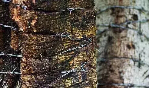 有一年,當(dāng)?shù)匕l(fā)生了一種奇怪的植物真菌疫病,方圓幾十公里的榆樹全部死亡,唯獨那顆箍了鐵圈的榆樹卻存活下來。