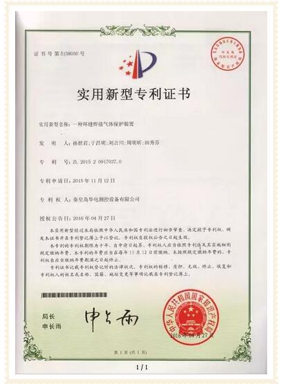 【企業(yè)要聞】公司申請(qǐng)的“一種環(huán)縫焊接氣體保護(hù)裝置”獲頒實(shí)用新型專(zhuān)利證書(shū)