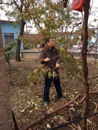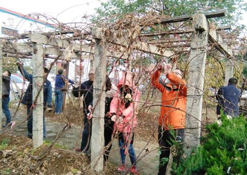 在黨支部書記劉劍鋒同志的指揮下,大家兵分兩路,不到一個小時就處理好了花園中所有的葡萄秧。勞動過程中,大家其樂融融,有說有笑。希望這些葡萄秧們安全過冬,來年結(jié)出甜美的葡萄。