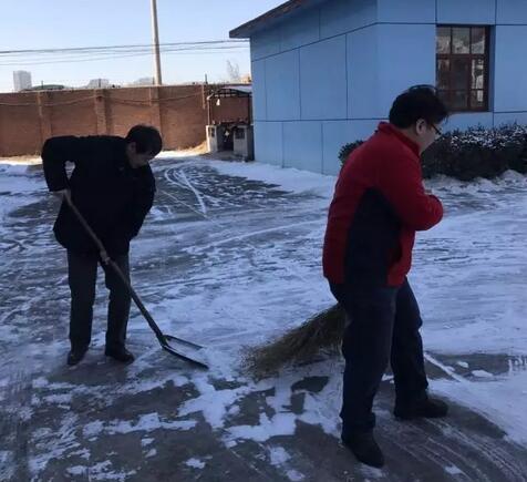 公司大院里陽光照射不到的地方,積雪還有很多,員工進進出出很不安全,1月9日上午管理部組織人員進行清雪,大家默契配合,很快就將路面清理干凈了,背陰的地方,天氣很冷,但是掃雪的熱情早已沖破嚴(yán)寒。質(zhì)檢安全部經(jīng)理劉慶明,不顧腰痛,也加入了我們,還有劉磊,因為他們的身體不好,被大家攔下了。