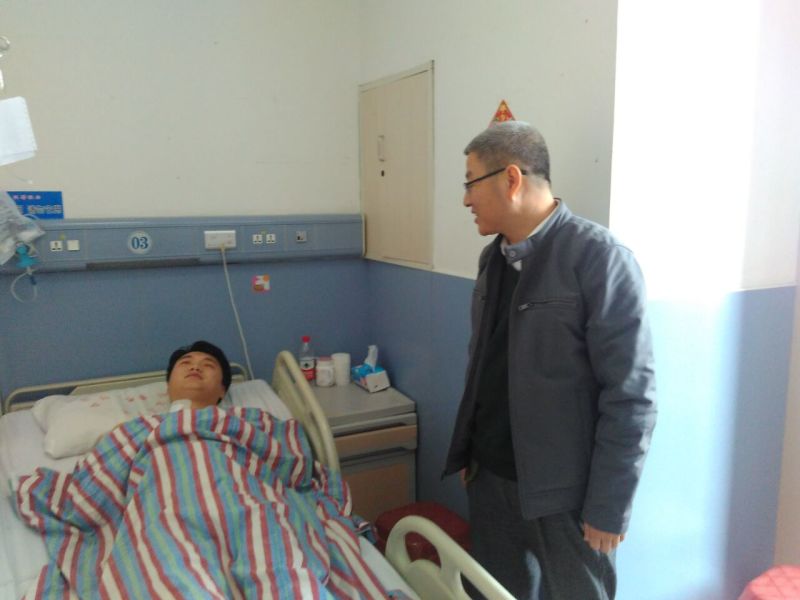 2017年2月7日上午,秦皇島市市民情感護理中心一行人由劉吉川主任帶領(lǐng),在原秦皇島市精神衛(wèi)生中心心理科主任魏華的陪同下,來到秦皇島市第一人民醫(yī)院,探望在大年初四協(xié)助公安部門對精神障礙患者進行應(yīng)急處置受傷的90后小護士龍浩然同志,并送去了一千元現(xiàn)金和水果籃。