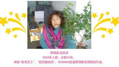 【“印象•華電”系列報(bào)道】難忘的ISO9000取證之旅” 2018-04-04管理部 田秀芬2003年入職,在職15年。曾獲“優(yōu)秀員工”、“優(yōu)秀報(bào)道員”。ISO9000質(zhì)量管理體系管理者代表。 作為一名在職十五年的老員工,我與華電測(cè)控一路走來、共同成長(zhǎng),有很多美好的回憶和動(dòng)人的故事,今天我要講More