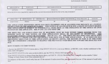 好消息:公司于2014年7月向美國(guó)提交的“汽包水位磁致液位計(jì)”發(fā)明專利申請(qǐng),經(jīng)過美國(guó)知識(shí)產(chǎn)權(quán)局嚴(yán)謹(jǐn)認(rèn)真的審查,已經(jīng)授予了發(fā)明專利權(quán)。這是我公司獲得的第35項(xiàng)自主知識(shí)產(chǎn)權(quán)。 本發(fā)明公開了一種汽包水位磁More